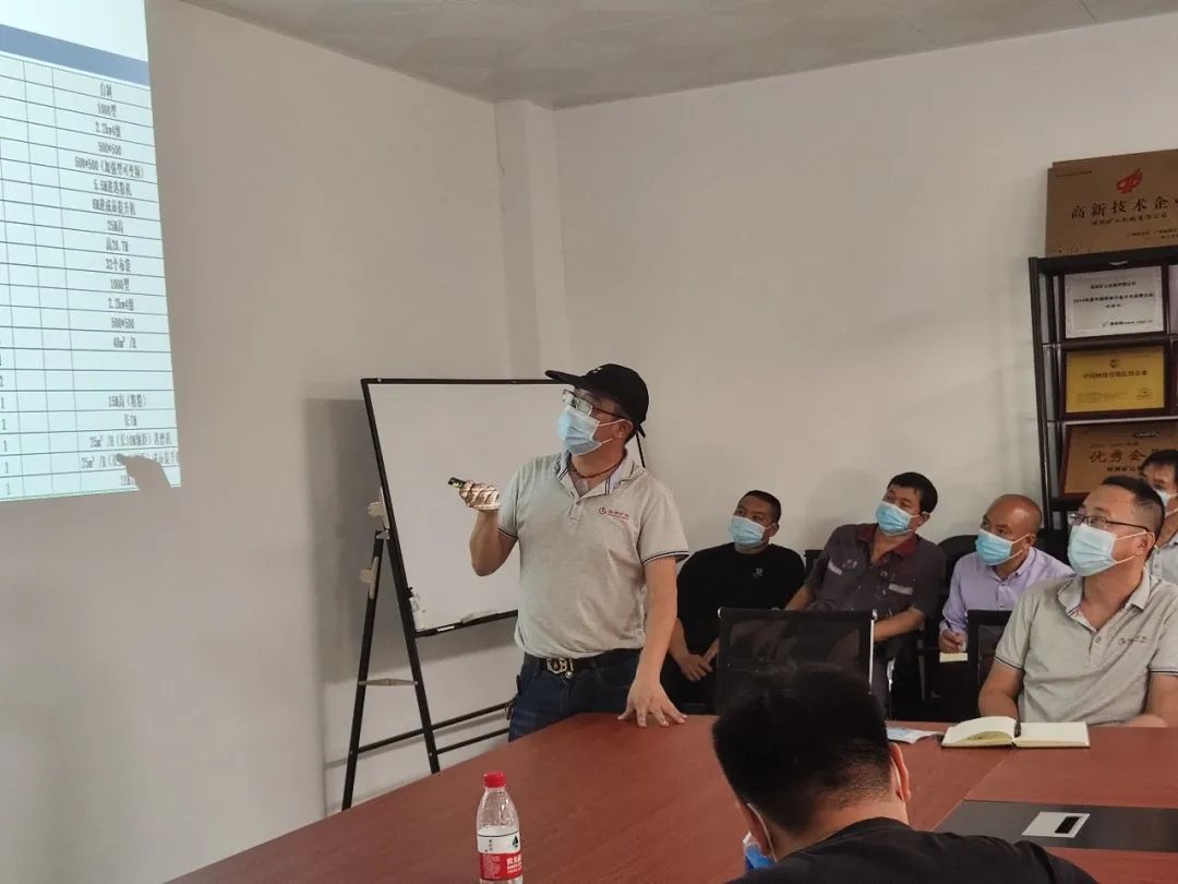 會上,研發部工程師鄧源就福建、廣西等多個氫氧化鈣生產線項目分別從方案設計、設備采購、以及設備安裝施工過程中遇到的問題做項目總結匯報。