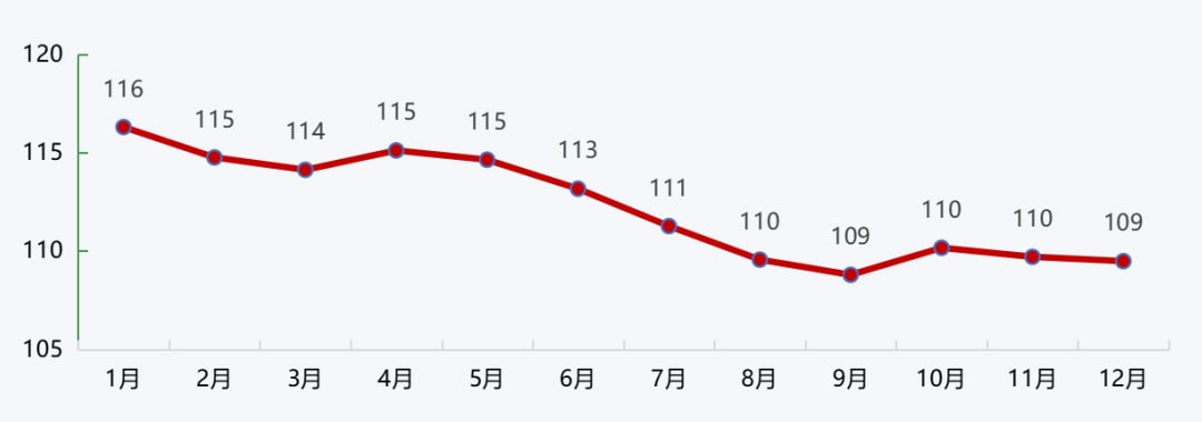 據中國砂石協會大數據中心顯示,2022年12月,全國砂石綜合均價為109元/噸,12月同比下跌7.0%。